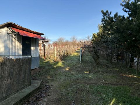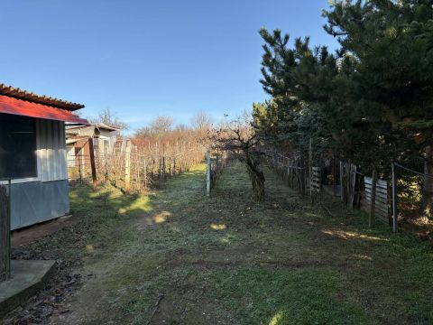 Rendezett telek termő gyümölcsfákkal, szőlővel