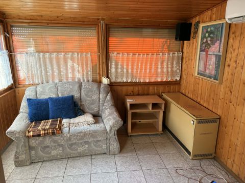 A nagyobb ház teljesen berendezett, egy szobával, konyhával, előszobával és zuhanyzó + WC-vel