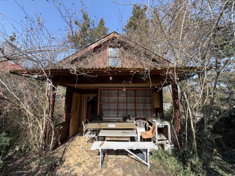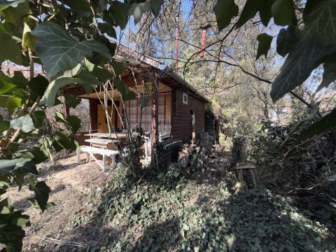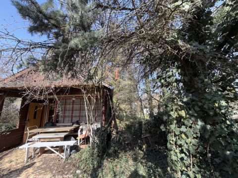A körbekerített, vadregényes telken egy komfort nélküli, kb. 18 nm-es alapterületű, vörösfenyőből épült házikó van.