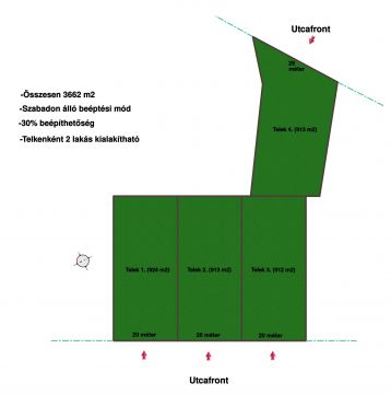 1 telek aszfalton, 3 telek köves úton megközelíthető