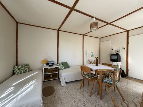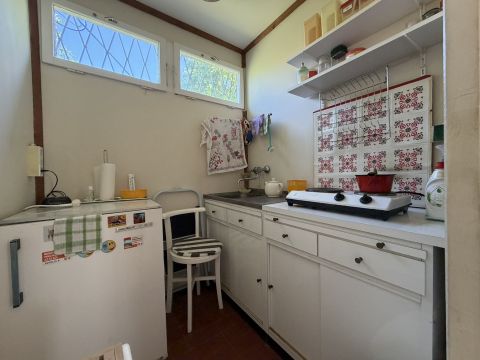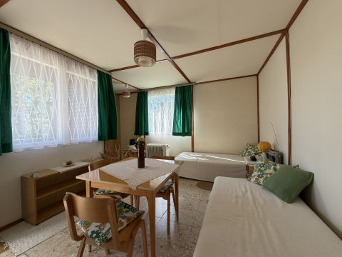 A telken jelenleg egy kb. 50 m²-es faház található, amely szezonális használatra alkalmas.