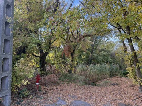 mely az állapotot tükrözi, mivel a területen több fa és bokor található, ezek eltávolítása és a tereprendezés az új tulajdonos feladata lesz.