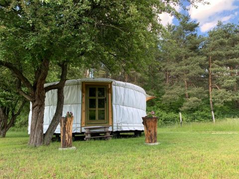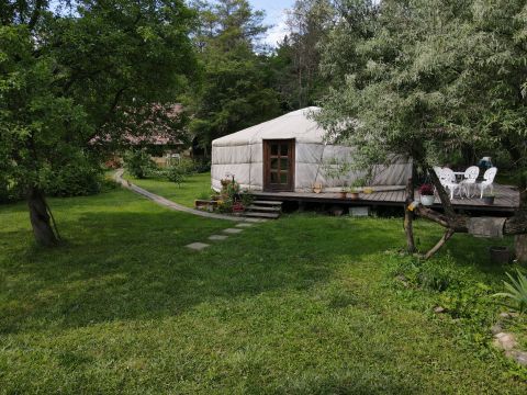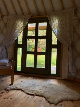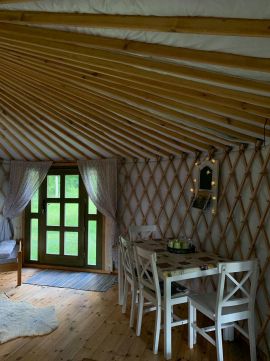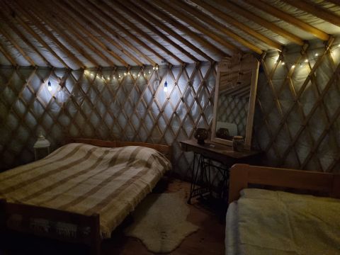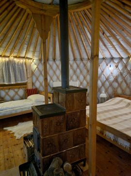 - 3 db téliesített lakó jurta teljes berendezéssel (2 db 6 m átmérőjű és 1 db 8 m átmérőjű jurta, hangulatos és praktikus lakóterekkel)