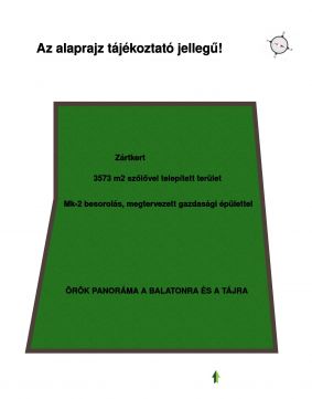 A terület szőlővel telepített, csodálatos örök panorámával a Balatonra és a tájra.