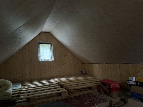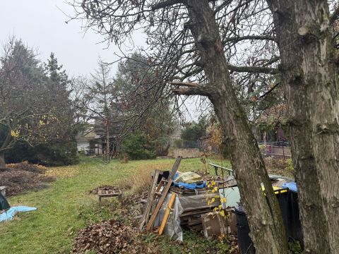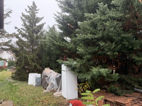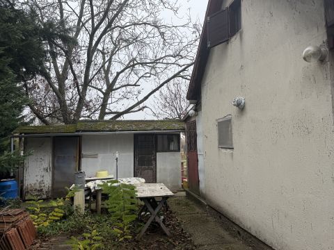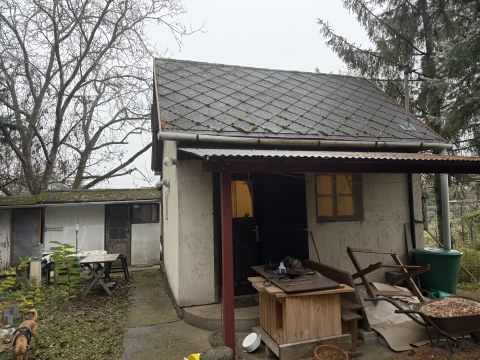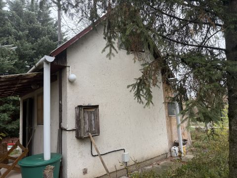 Az építkezés ideje alatt rendelkezésre áll egy kis házikó, ami ideiglenes lakhatásra is alkalmas lehet, emésztő nincs, ezenkívül egy szerszámos kamra is található a telek végében.