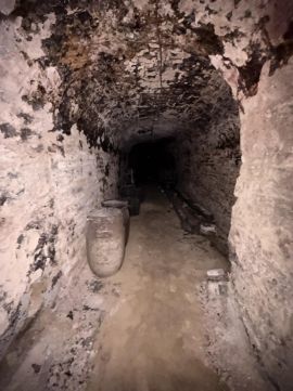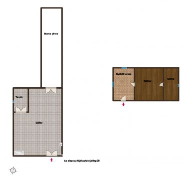 egy hozzá tartozó, kb. 12 m hosszú boltíves pince