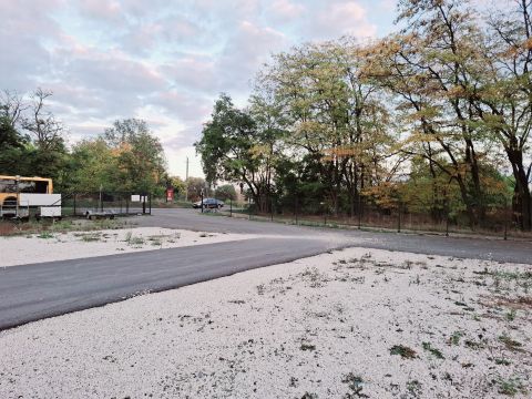 A telek egy elnyújtott, forgalmas főút mellett hosszan elnyúló terület.