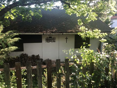 A telken van egy 50 négyzetméteres faház, amely állandó lakhatásra is alkalmas. Két háló, nappali, konyha+étkező, fürdő, wc van benne.