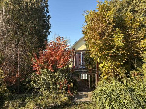 Gondozott kert körtefával, tujákkal, ciprussal, orgonával