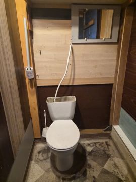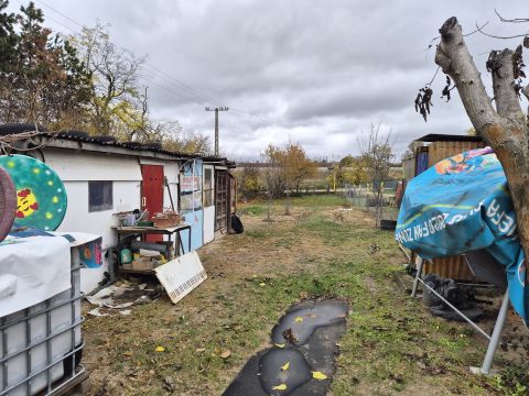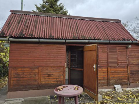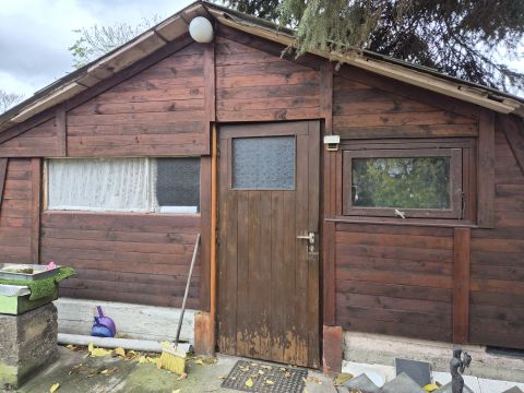A telken található egy masszív téglaépület, amelyet a tulajdonos fával burkolt, így faház jellegű megjelenése van.