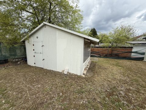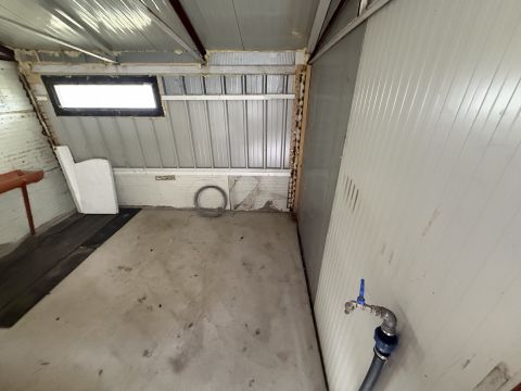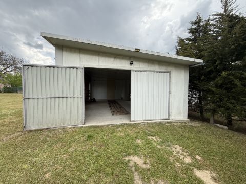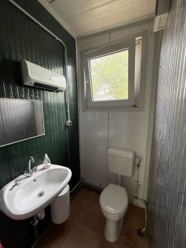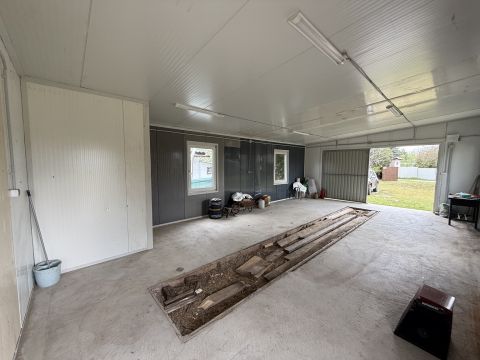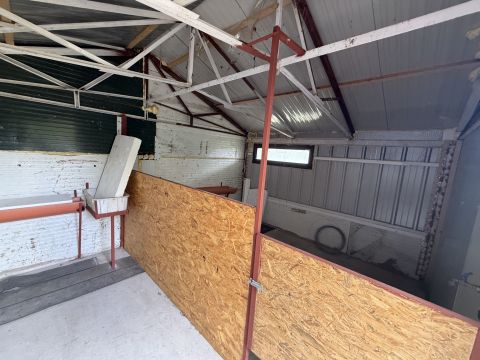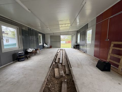 A telken már felépült egy 60 m2-es szigetelt szendvicspanel műhely, melyben mosdó is ki lett alakítva.
