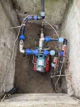 Víz-villany közmű a telken, gáz az utcában található. Fúrt kút található a területen, házi vízművel.