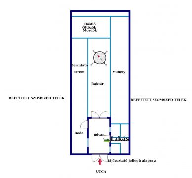 Az alaprajz a földszintet tükrözi, mely 1088 nm. Felette 600 nm galéria és ezen kívül van 3x60 nm szuterén raktár. Az autóknak parkolásra rendelkezésre áll 143 nm.
