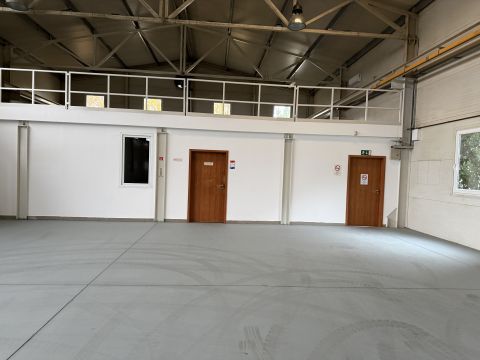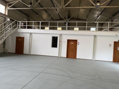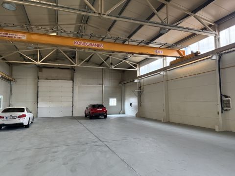A csarnok rendelkezik egy 5 tonnás daruval, 3 db kamionok behajtására alkalmas ipari kapuval.