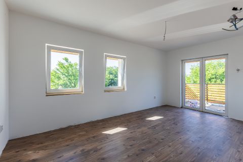 Nettó 99 m2 lakótér, nappali+2 szoba, 2 fürdőszoba és garázs.