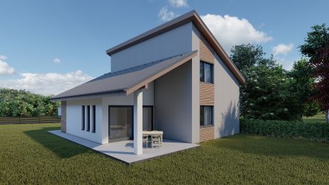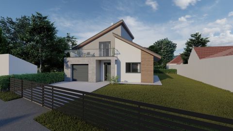 A földszinten a nappali, konyha + étkező, egy hálószoba, fürdőszoba és a közlekedőből nyíló toalett kerül kialakításra.