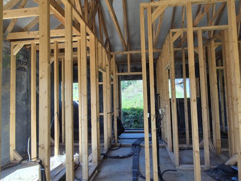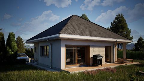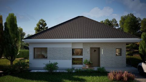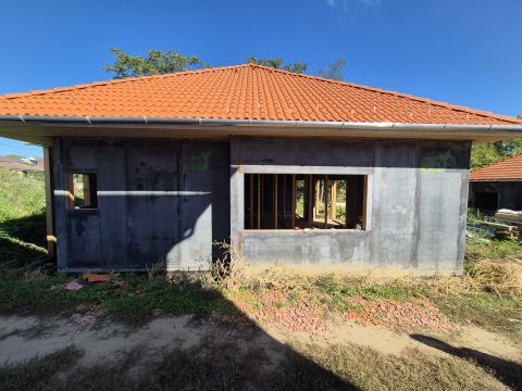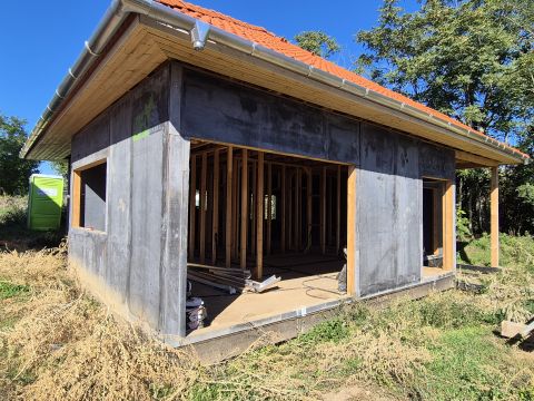 Jelenleg szerkezetkész állapotban lévő, de kulcsrakészen eladó egy SIP-paneles technológiával épült egyszintes családi ház.