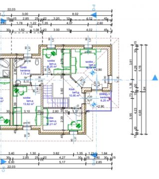 • öt hálószoba (egy a földszinten, négy az emeleten)