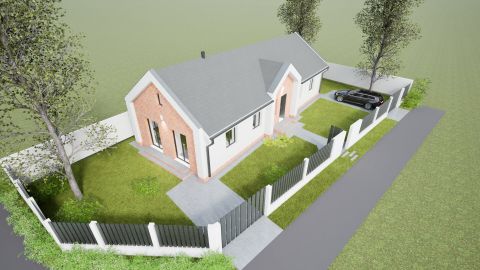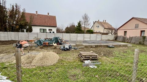 Ócsán, nyugodt, zöld környezetben, aszfaltozott utcában, saroktelken épül ez a nettó 103 m²-es (bruttó 130 m²), földszintes, önálló családi ház, hőszivattyús fűtéssel, 460 m²-es telken.