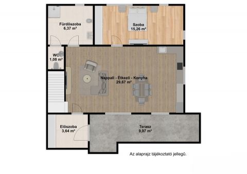 A 10nm-s terasz a nappaliból nyílik.