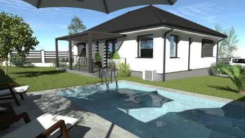 Maglódon a Központ közelében, de csendes mellékutcában, épülő modern lakóparkban kínálunk megvásárlásra egy FÖLDSZINTES kialakítású önálló családi házat 450 nm-es telekkel. Korszerű műszaki megoldások, megújuló energia, minimális rezsi, alacsony fenntartási költségek. A fűtést hőszivattyú biztosítja padlófűtéssel, H tarifás villanyóra (3x16 A), nyáron a kellemes hőmérsékletről inverteres hűtő-fűtő klíma gondoskodik, az ablakok elektromos antracit redőnyökkel lesznek felszerelve, a nyílászárók belül fehér, kívül antracit színű 3 rétegű üvegezésű műanyag ablakok. Telken belül viacolor autó beálló lesz kialakítva két autó részére, elektromos kapun jutunk be a kertbe. A ház okostéglából épül 20 cm-es szigeteléssel. Az ingatlan belső elosztása a mai igényeknek maximálisan megfelel: tágas, világos nappali-konyha-étkező teraszon át kertkapcsolattal, három kényelmes méretű hálószoba, fürdőszoba, háztartási helyiség, külön mellékhelyiség, tároló, tágas előszoba. Földszintes kialakítása és megfelelő szobaszáma miatt kiváló lehetőség fiatalabb generációnak, gyermekekkel költözőknek és idősebb korosztálynak is, mivel házon belül nem kell lépcsőzni. A látványterveken látható medence és bioklimatikus pergola igény esetén egyéni megállapodás alapján kerül kivitelezésre. Az ingatlan várható átadása 2026. negyedik negyedéve. Csok hitel, start hitel igénybe vehető. A környék csendes, lakóparki szép környezet, kiváló elhelyezkedés: iskola, bevásárlási lehetőség, orvosi rendelő, gyógyszertár, városközpont 300 méterre található, gyalogosan is rövid sétával elérhető, ugyanígy a tömegközlekedés, buszmegálló is.