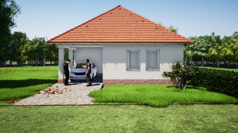 Elosztása: Amerikai konyhás nappali és 4 hálószoba, 2 fürdőszoba, kamra, háztartási helység, közlekedő, előszoba.