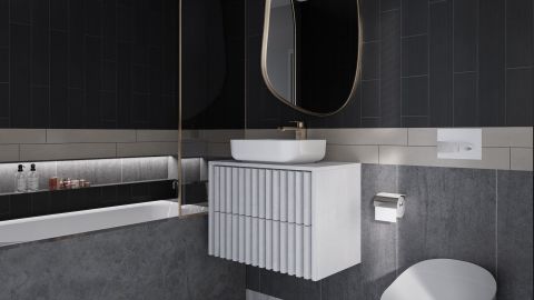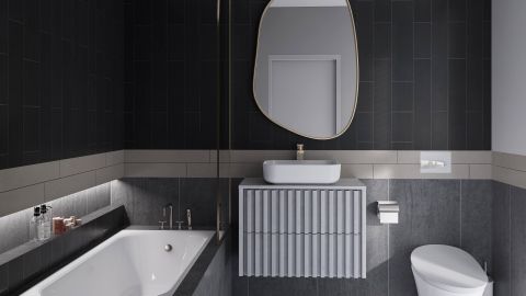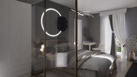 A földszinti hálószobához közvetlenül kapcsolódik egy gardróbszoba és egy fürdőszoba, amely privát szférát teremt és személyre szabható kényelmet nyújt.