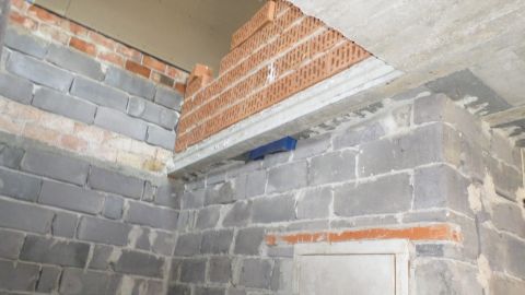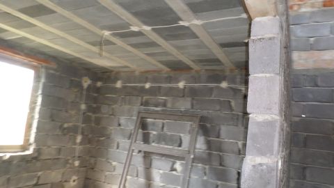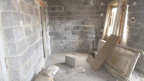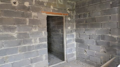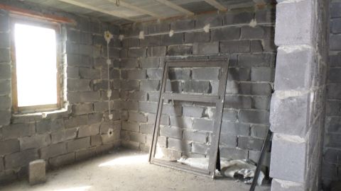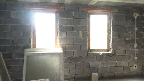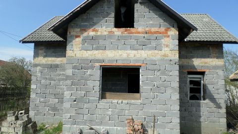 A kivitelezés elkezdődött, tető alá sikerült tenni, de aztán megálltak a munkálatok. A földszinten a válaszfalak elkészültek, az aljzatbeton meg van és a szennyvízelvezetés be van csövezve.