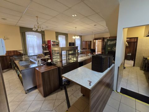 közvetlen utcafrontos, két nagyobb helyiséggel, valamint több kisebb helyiséggel