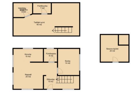 Az ingatlanhoz több melléképület és tároló tartozik, illetve egy önálló, stabil szerkezetű szaunaépület, amely tovább növeli a lehetséges funkciók körét.