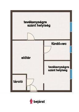 Az ingatlan kialakítása praktikus: két önálló helyiség, külön vizesblokk, előtér.