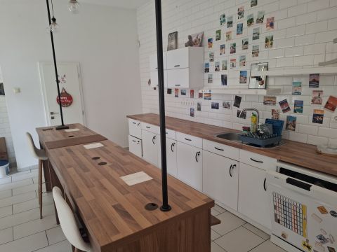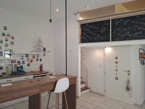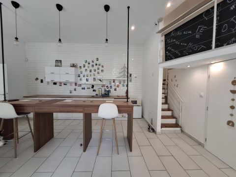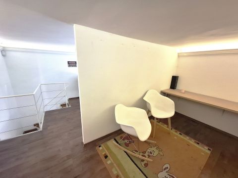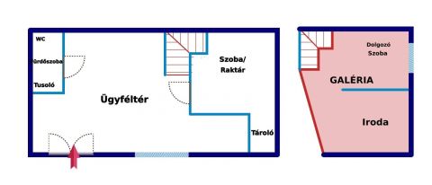 Az üzlethelyiségbe belépve egy tágas tér van, ami ideális ügyféltérnek, vendégtérnek. A galéria alatt található különálló helyiség az ügyféltérből nyílik, ami kezelőszobának, raktárnak vagy akár dolgozószobának is kitűnően alkalmas. A galéria jelenleg két részre van osztva. Akár vendégek fogadására, irodahelyiségnek, tárgyalónak is kitűnő a praktikus kialakításnak köszönhetően.