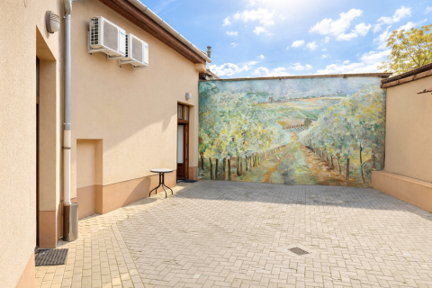 A zárt, térkövezett udvar elektromos kapuval megközelíthető, és 3 gépkocsi számára biztosít parkolási lehetőséget.