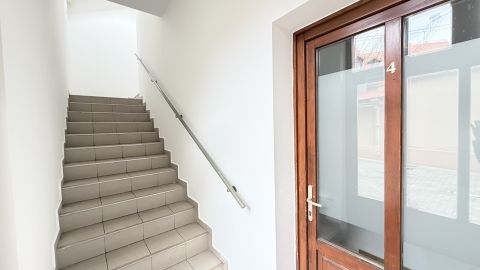- A földszinten két apartman (56 m² és 64 m²), egy üzlethelyiség, recepcióként használt iroda, továbbá kazánház és mosókonyha került kialakításra.