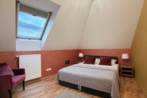 - A beépített tetőtérben három apartman található (96 m², 51 m² és 52 m²), melyek közül a legnagyobb egy tágas, világos, teraszos nappalival rendelkezik.