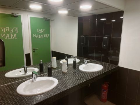 A helyiség, amely belső két szintes (galériás), a Deák téri zöld parkra néz. Hatalmas, utcai frontos üvegfelületeinek köszönhetően világos és hangulatos vendégteret kínál. Meccsnapokon vegyes bajnoki és BL meccsek nézhetőek a helyszínen.