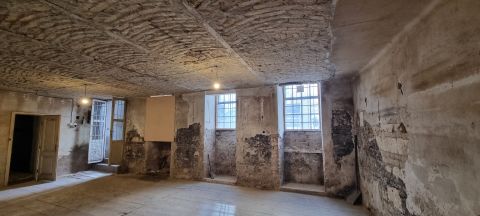 A helyiség korábban asztalosműhelyként működött, állapotát tekintve felújítandó. Bejárata közvetlenül az utcafrontról van, néhány lefele vezető lépcsőfok megtételét követően egy tágas térben találjuk magunkat, ahonnan megközelíthető a többi helyiség