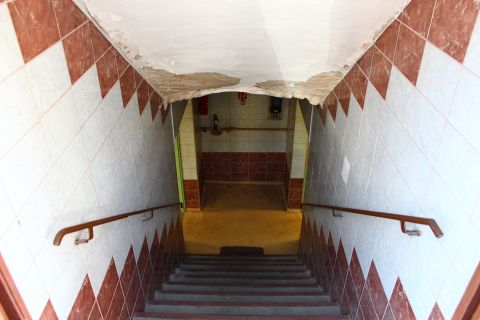 A lejárata szintén az utcáról nyílik, széles kényelmes lépcsőn lehet lejutni.