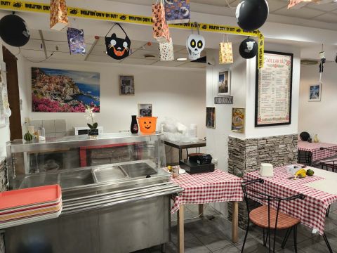 Teljes vendégtér, géppark, hűtők, pultok, elszívók, engedélyek, receptek igény szerint, futáspartneri felületek.