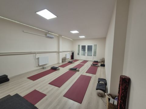 Rugalmas kialakítás: Jelenleg két külön bejáratú egységként működik (egy hangulatos jógastúdió és egy modern iroda/közösségi tér), de kis költséggel konyhán keresztül bármikor újra összenyitható.