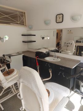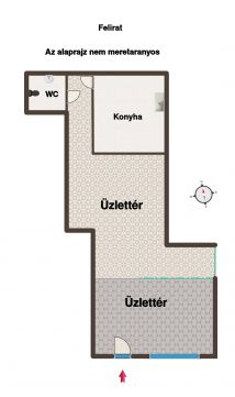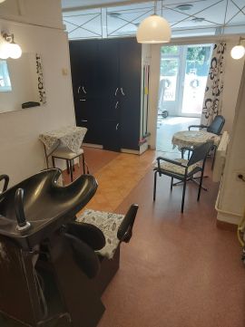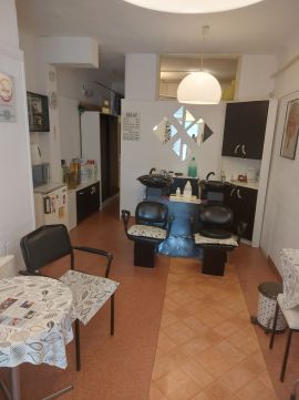 A helyiség jelenleg egy ajtónyílással össze van nyitva a szomszédos fodrászüzlettel, mivel egyelőre közösen használják a közműveket.