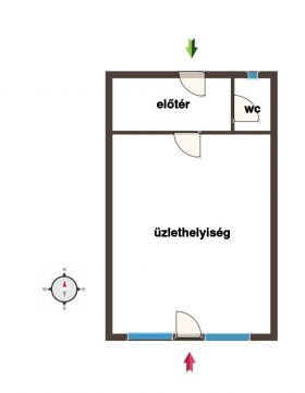 A vizesblokk és előtér közös használatú a szomszédos üzlettel.