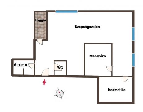 A helyiségben 4 fodrászszék, 1 barberszék, valamint külön kozmetikai és masszázs helyiség található, így tökéletes választás fodrászat, kozmetika, szépségközpont vagy akár kis átalakítás utàn orvosesztétikai szolgáltatás számára is.