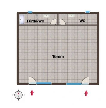 50 m²-es nagy egybenyitott terem könnyen átalakítható