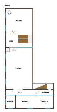A jelenlegi kialakítás ipari tevékenységhez igazodik, így több, kisebb helyiségre van osztva, azonban a közfalak könnyen eltávolíthatók, és az ingatlan alaprajza egyszerűen újragondolható. Ennek köszönhetően akár két, közel 100 négyzetméteres, galériás lakás is kialakítható, így a befektetési potenciál rendkívül magas. A szintek között egy használaton kívüli teherlift is található, amely további kényelmi vagy praktikus funkciókat is szolgálhat az átalakítás során.