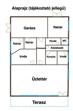 A hatalmas, 77 m2 nagyságú üzlettéren kívül kialakításra került benne konyha, fürdőszoba, WC, iroda, raktárak, valamint a közterületről megközelíthető Hörmann garázskapuval felszerelt 2 autó tárolására alkalmas garázs. Így az ingatlan az üzleti vállalkozás mellett akár állandó lakhatásra is alkalmas.