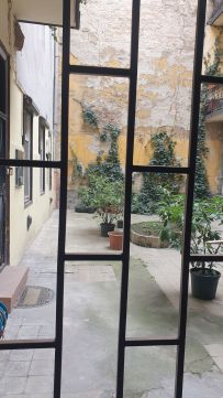 Két bejárat: közvetlen utcai kapcsolat + belső udvari bejárat
