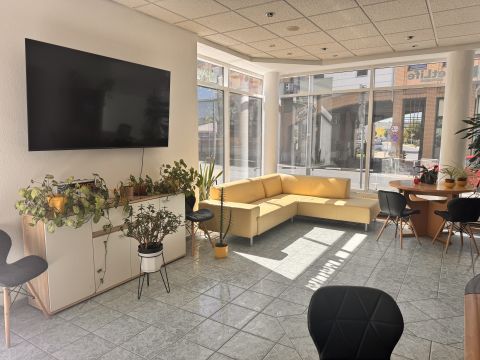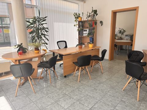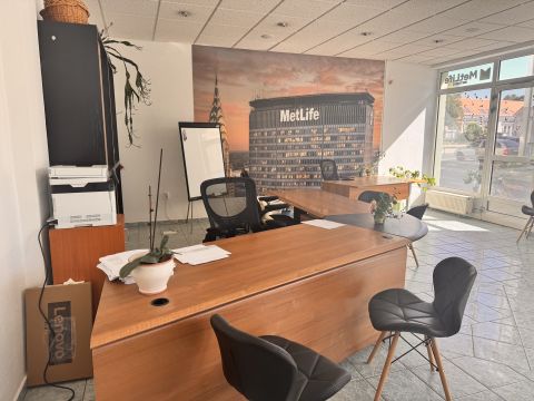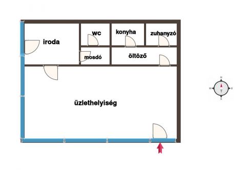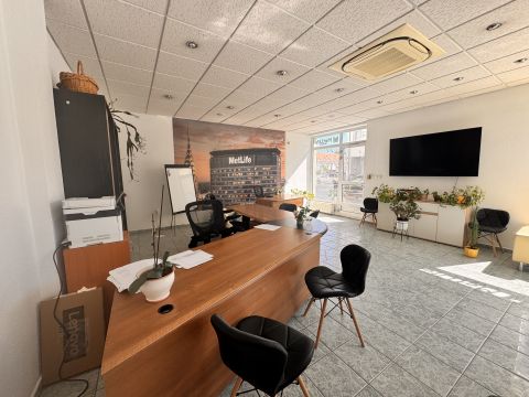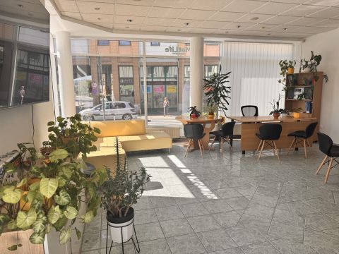 A 2 bejárattal rendelkező, végig utcafronti üvegportálos ingatlanban van egy 55 m2-es nagy és világos üzlettér, egy 10 m2-es iroda, két különálló mosdó, egy zuhanyzó, egy kis konyha.