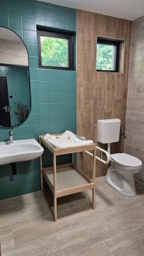 - Ízlésesen kialakított mosdók, Wc-k, pelenkázó.