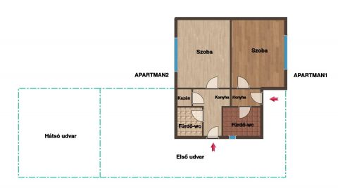 Az ingatlan további előnye, hogy a hátsó udvarban található egy melléképület, amely jelenleg garázsként és külső tárolóként funkcionál, azonban igény szerint további apartmanná alakítható, így újabb bevételi lehetőséget kínál a leendő tulajdonos számára.
